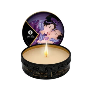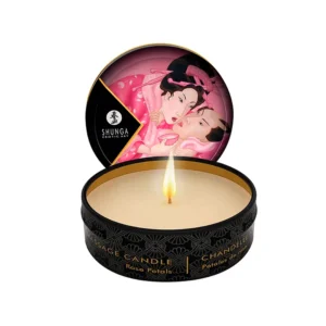 Crea la atmósfera más novelesca y relajante con la vela de masaje mini de la firma Shunga e invita a tu pareja a los masajes más seductores del momento. Una vela única y original cuya llama al arder se convierte en un nutritivo aceite de masaje para los más estimulantes movimientos y caricias de complicidad. Disponible en las siguientes fragancias a elegir: Romance (fresas con champagne), Aphrodisia (rosas), Desire (vainilla), Libido (frutas exóticas), Excitación (chocolate), Zentitude (té verde).
