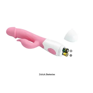 El nuevo Vibrador Peter es muy suave y posee un diseño con protuberancias el cual permite tanto penetración como estimulación del clítoris. Su estimulador de punto G cuenta con una superficie bulbosa para mayor estimulación. Posee 30 funciones de vibración, estimulador clitorial tipo conejo y un motor independiente tanto para la parte superior como el brazo estimulador clitorial, lo que se traduce en potentes vibraciones. Utiliza dos pilas AAA y es resistente al agua (no sumergible). Apto para lubricantes a base a agua y/o híbridos.